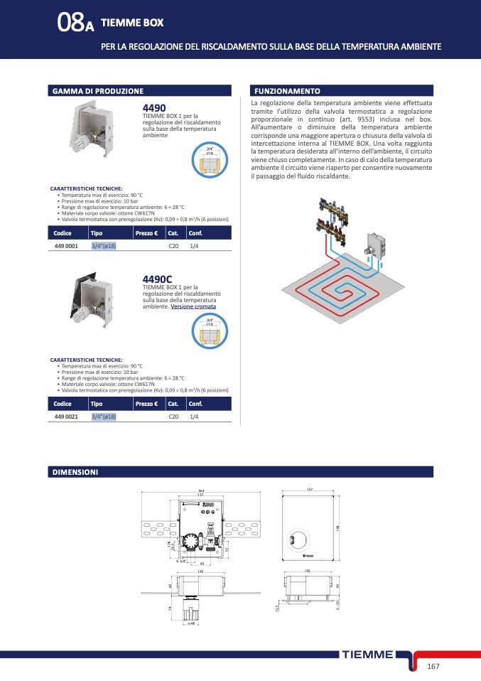 Valvola termostatica con preregolazione (Kv): 0,09 ÷ 0,8 m3/h (6 posizioni)