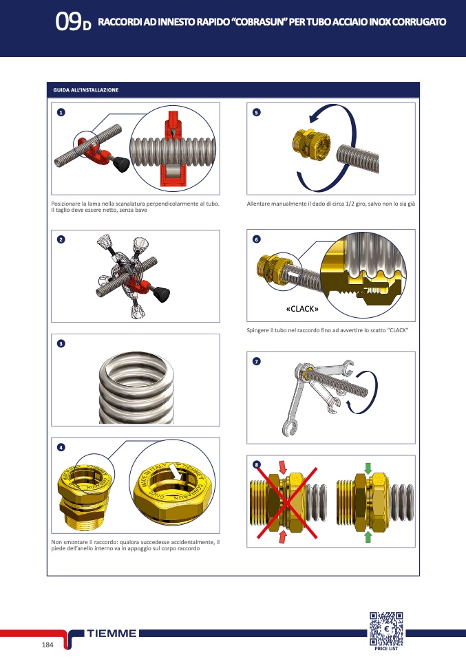 Spingere il tubo nel raccordo fino ad avvertire lo scatto “CLACK”