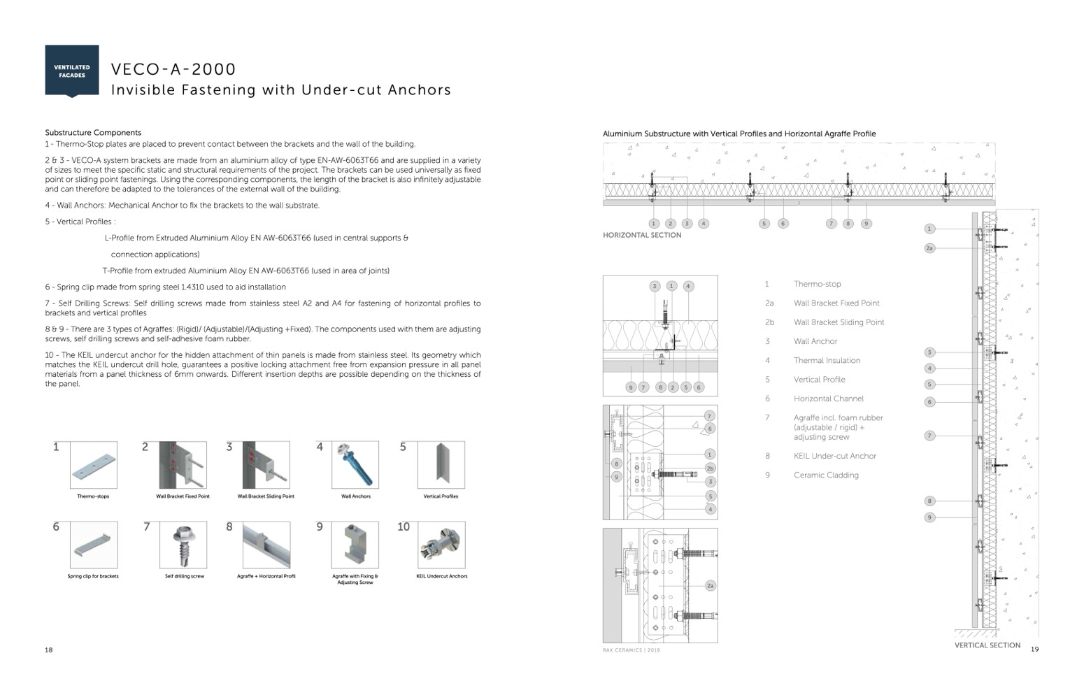 2 & 3 - VECO-A system brackets are made from an aluminium alloy of type EN-AW-6063T66 and are supplied in a variety