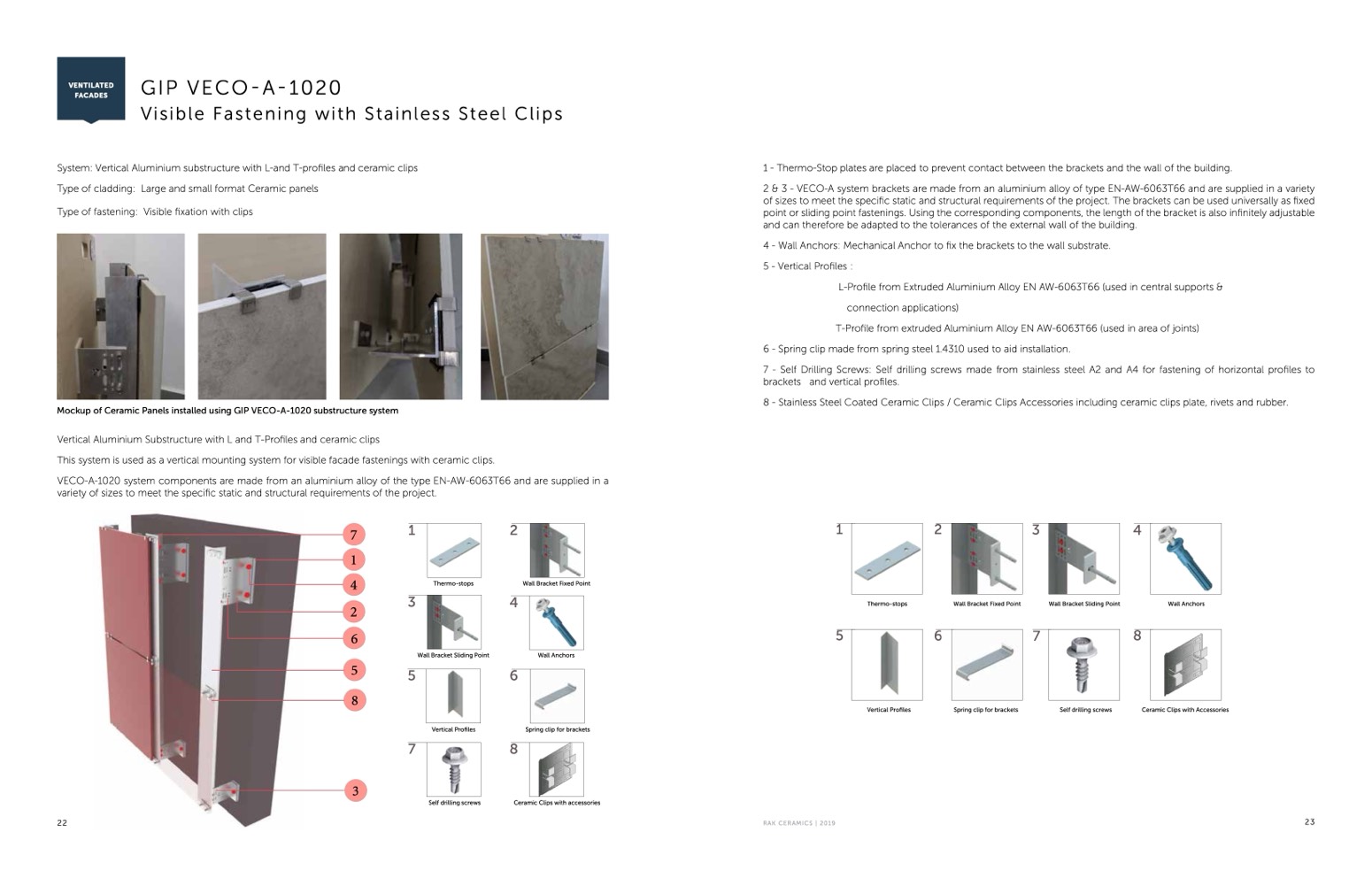 2 & 3 - VECO-A system brackets are made from an aluminium alloy of type EN-AW-6063T66 and are supplied in a variety