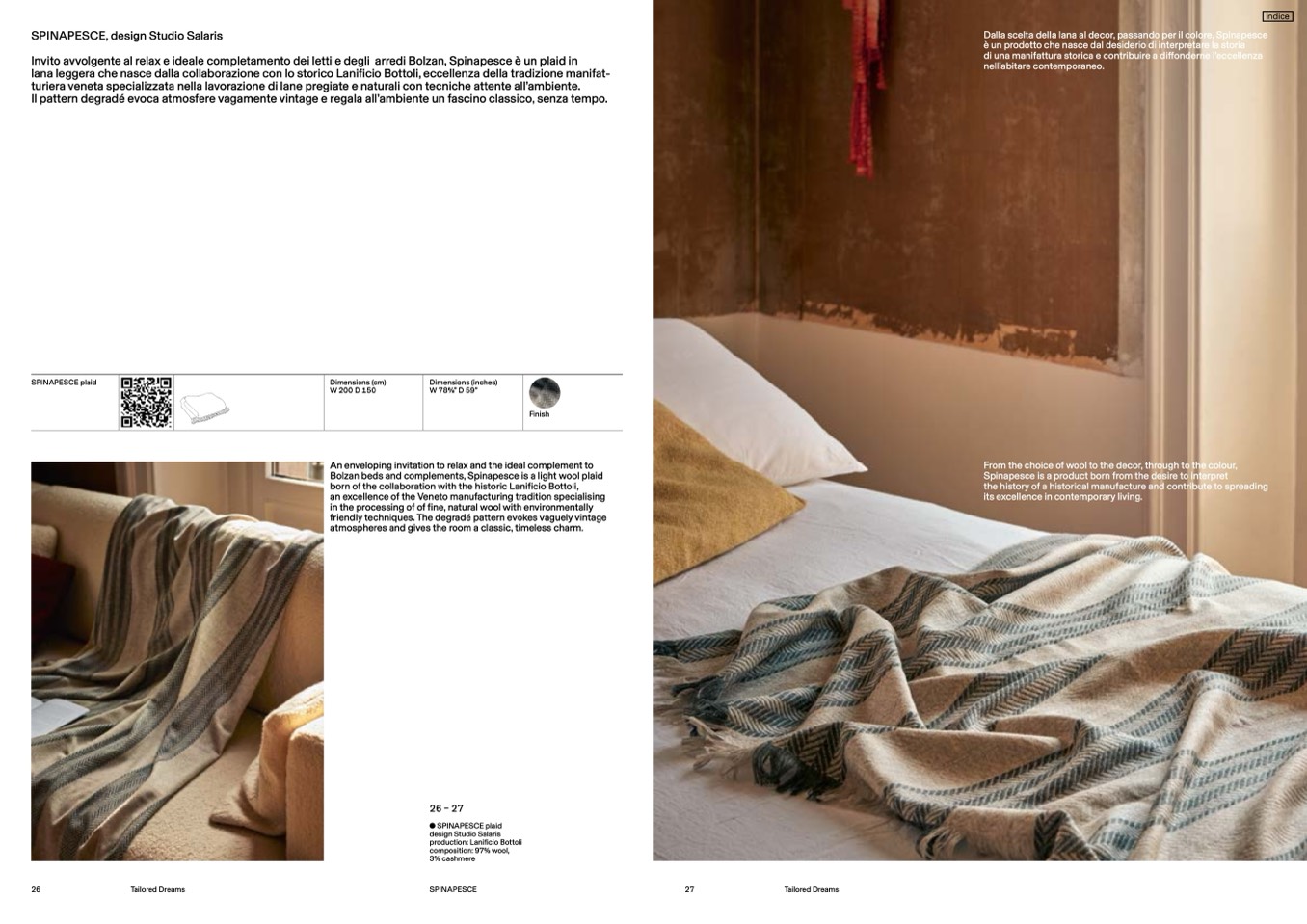 Bolzan beds and complements, Spinapesce is a light wool plaid