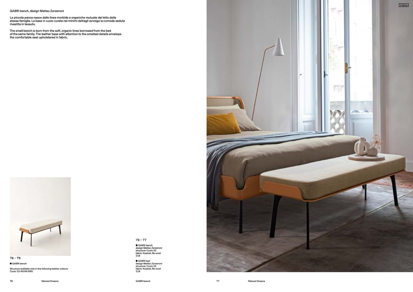 The small bench is born from the soft, organic lines borrowed from the bed