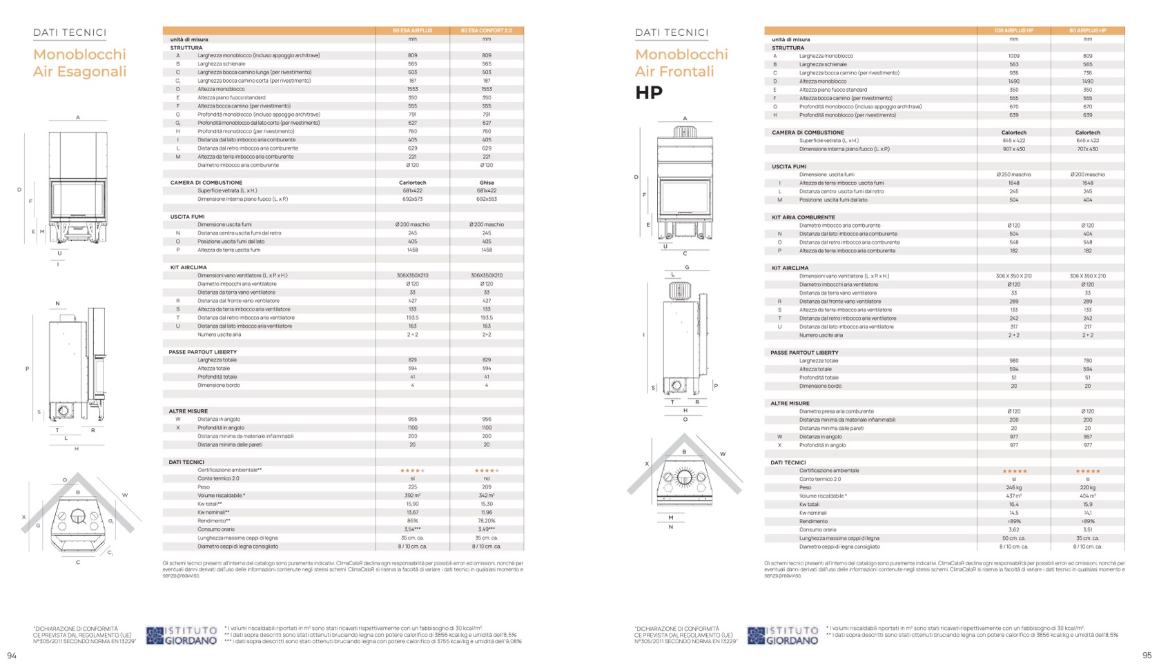 ** I dati sopra descritti sono stati ottenuti bruciando legna con potere calorifico di 3856 kcal/kg e umidità dell’8,5%
