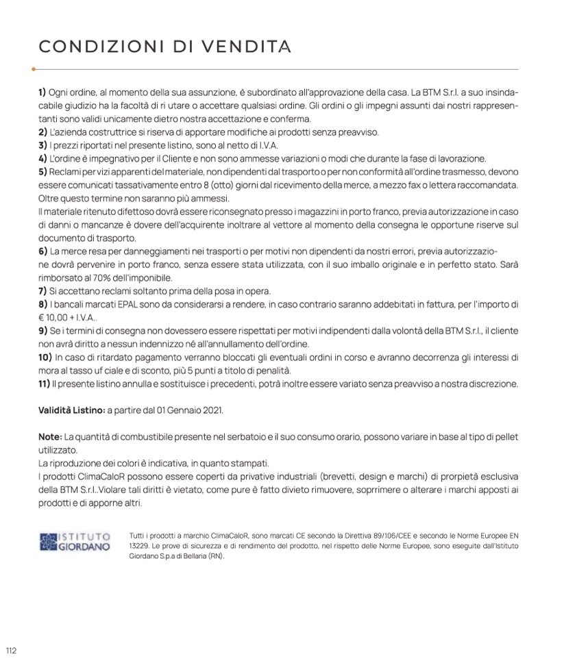 Validità Listino: a partire dal 01 Gennaio 2021.