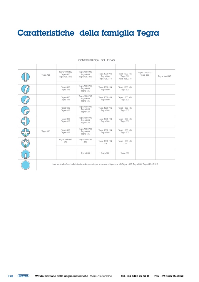 basi terminali o fondi della tubazione del pozzetto per le camere di ispezione NG Tegra 1000, Tegra 600, Tegra 425, Ø 315
