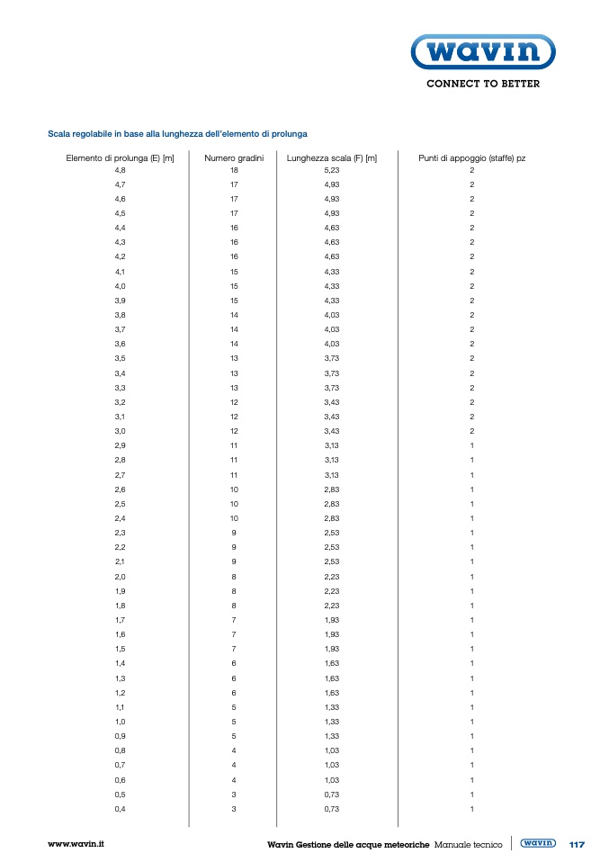 Scala regolabile in base alla lunghezza dell’elemento di prolunga