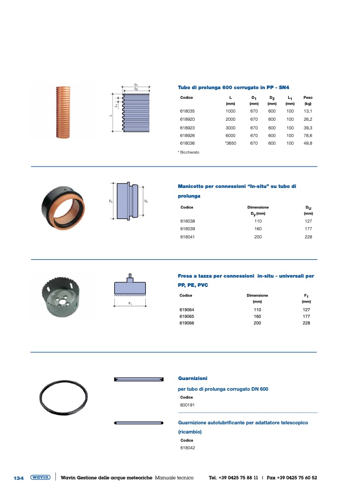 per tubo di prolunga corrugato DN 600
