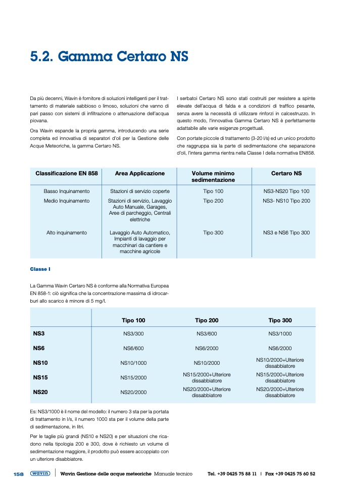 d’oli, l’intera gamma rientra nella Classe I della normativa EN858.