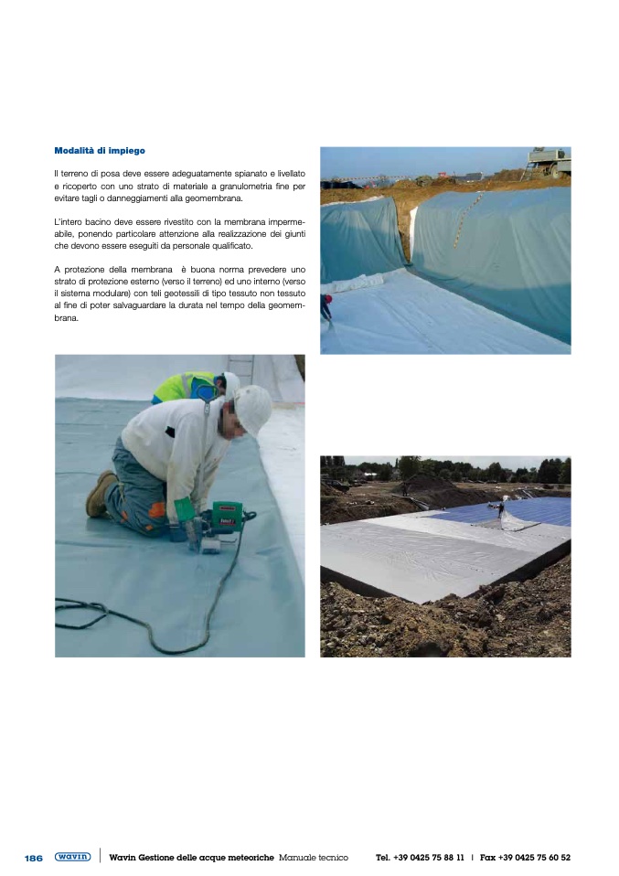 L’intero bacino deve essere rivestito con la membrana imperme-