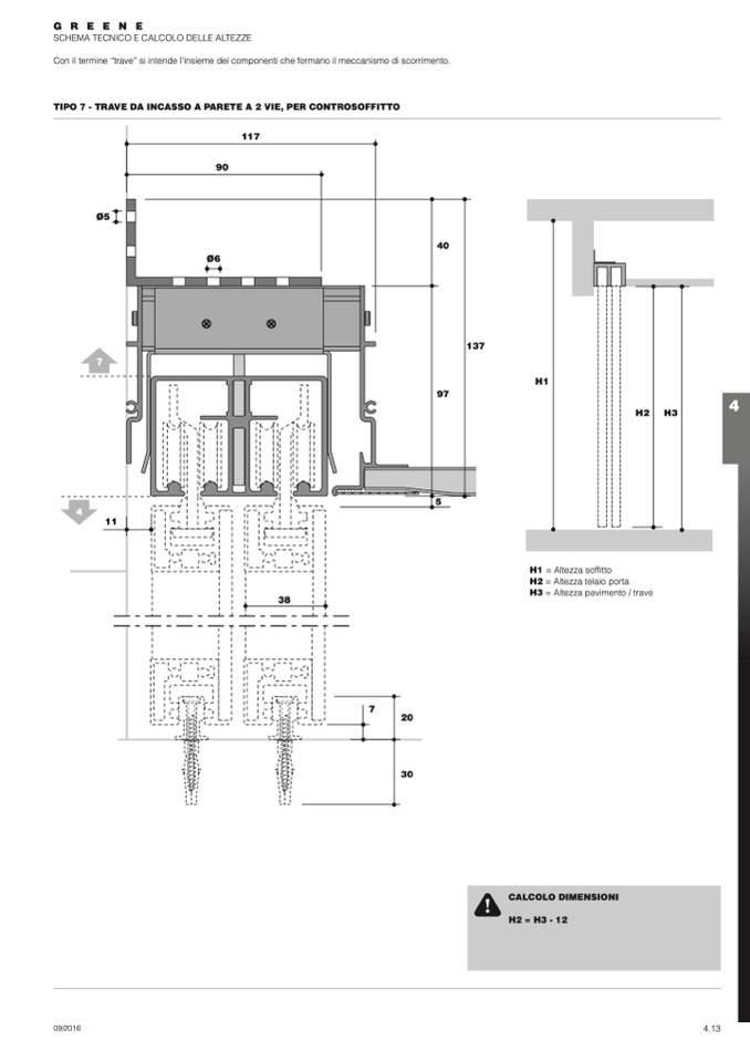TIPO 7 - TRAVE DA INCASSO A PARETE A 2 VIE, PER CONTROSOFFITTO