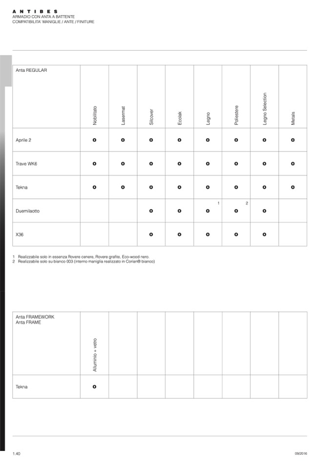 COMPATIBILITA' MANIGLIE / ANTE / FINITURE
