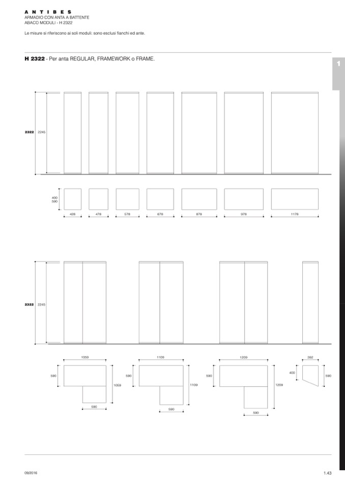 Le misure si riferiscono ai soli moduli: sono esclusi fianchi ed ante.