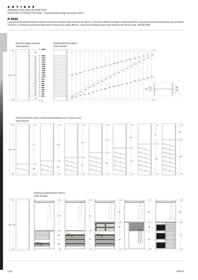 richiesti. A richiesta è possibile realizzare la foratura (a passo 96 mm, come da schema) lungo tutta l'altezza del fianco (cod. ZNCB21AN).