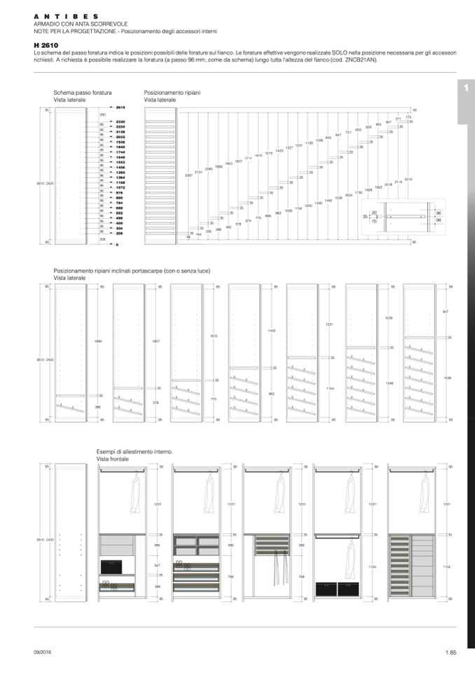 richiesti. A richiesta è possibile realizzare la foratura (a passo 96 mm, come da schema) lungo tutta l'altezza del fianco (cod. ZNCB21AN).