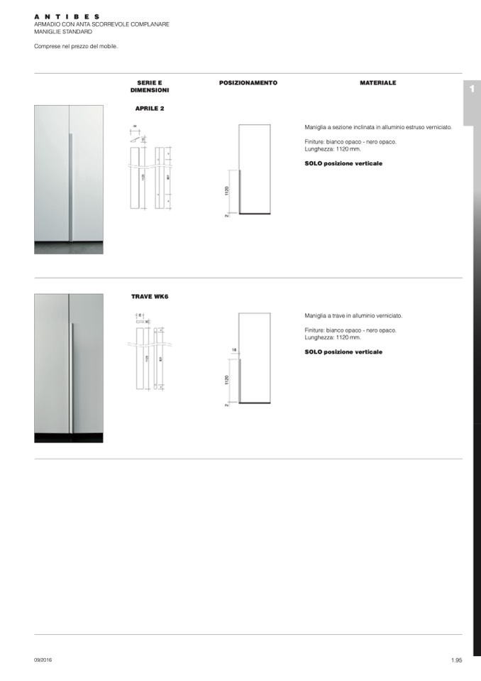 Maniglia a sezione inclinata in alluminio estruso verniciato.