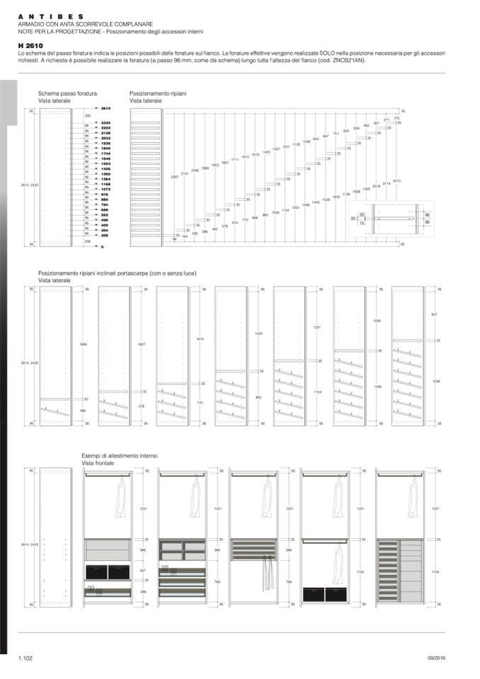 richiesti. A richiesta è possibile realizzare la foratura (a passo 96 mm, come da schema) lungo tutta l'altezza del fianco (cod. ZNCB21AN).