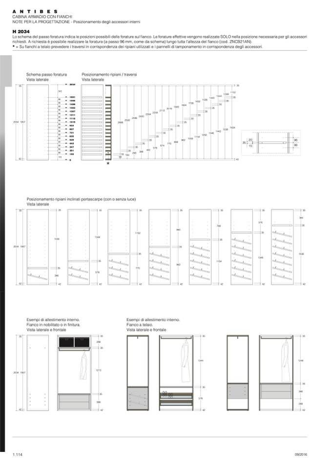 richiesti. A richiesta è possibile realizzare la foratura (a passo 96 mm, come da schema) lungo tutta l'altezza del fianco (cod. ZNCB21AN).