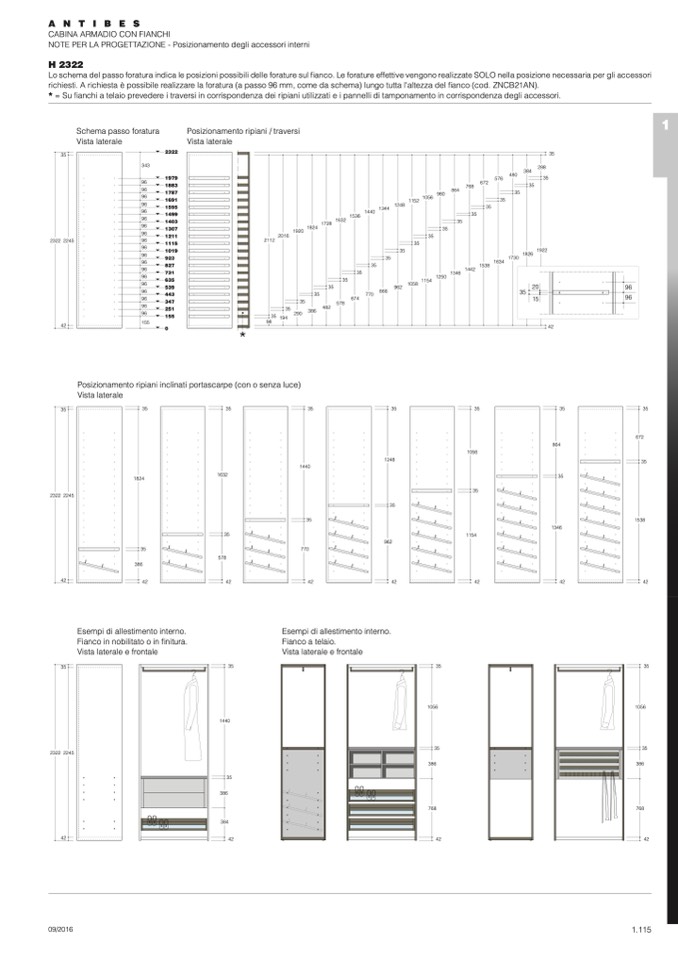 richiesti. A richiesta è possibile realizzare la foratura (a passo 96 mm, come da schema) lungo tutta l'altezza del fianco (cod. ZNCB21AN).