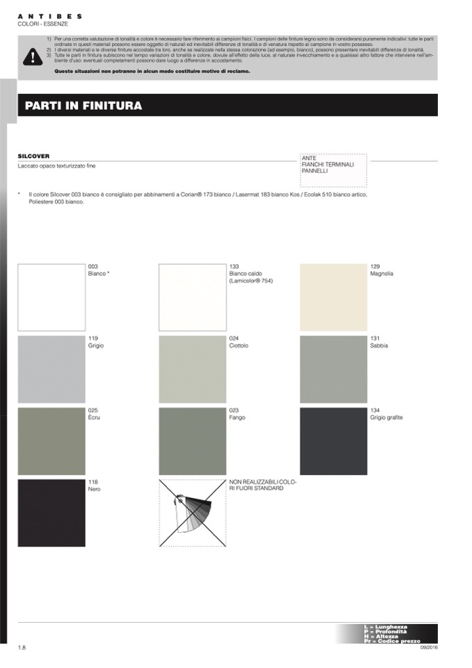è necessario fare riferimento ai campioni fisici. I campioni delle finiture legno sono da considerarsi puramente indicativi: tutte le parti