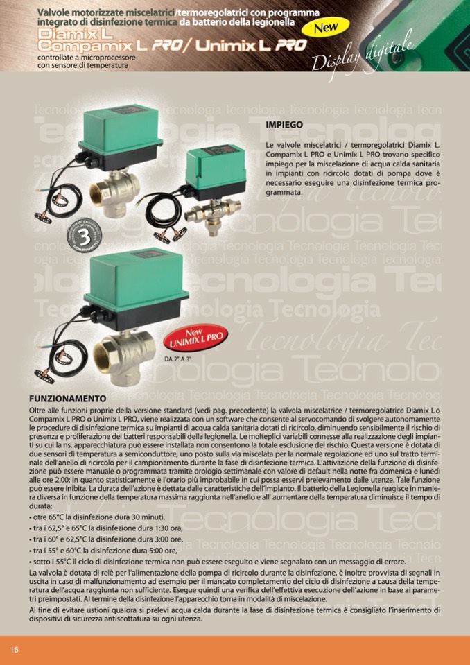 Oltre alle funzioni proprie della versione standard (vedi pag. precedente) la valvola miscelatrice / termoregolatrice Diamix L o
