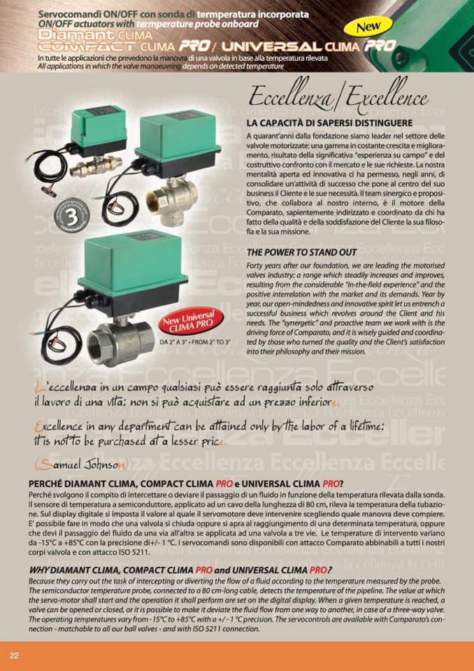 The operating temperatures vary from -15°C to +85°C with a +/ - 1 °C precision. The servocontrols are available with Comparato’s con-
