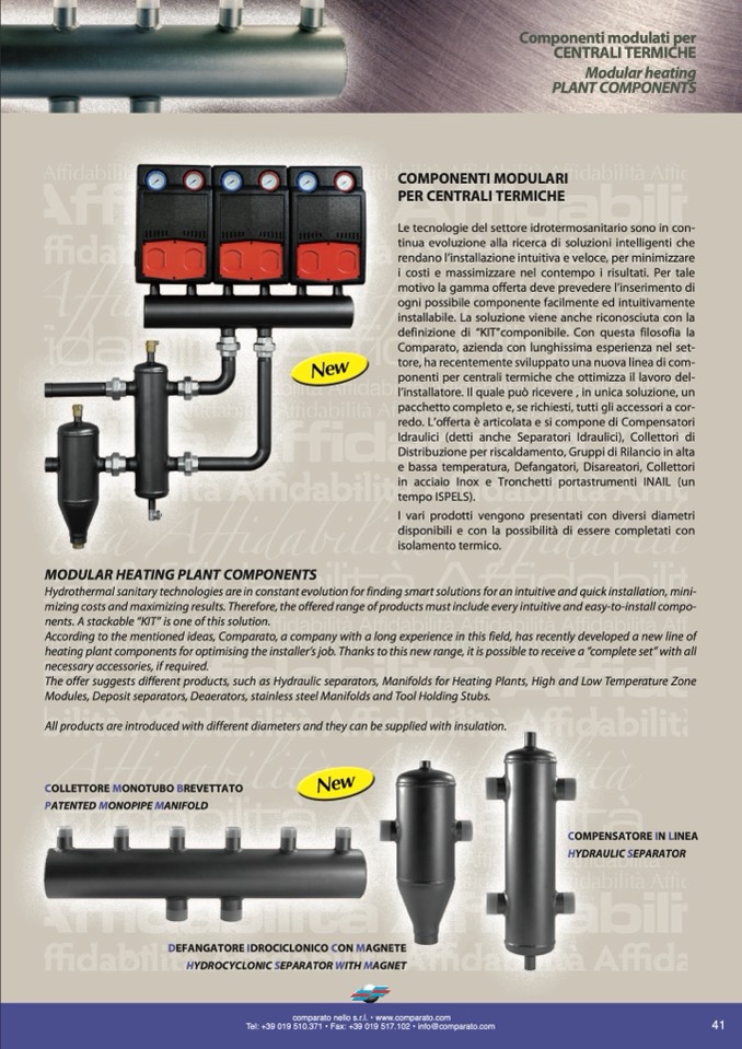 The offer suggests different products, such as Hydraulic separators, Manifolds for Heating Plants, High and Low Temperature Zone