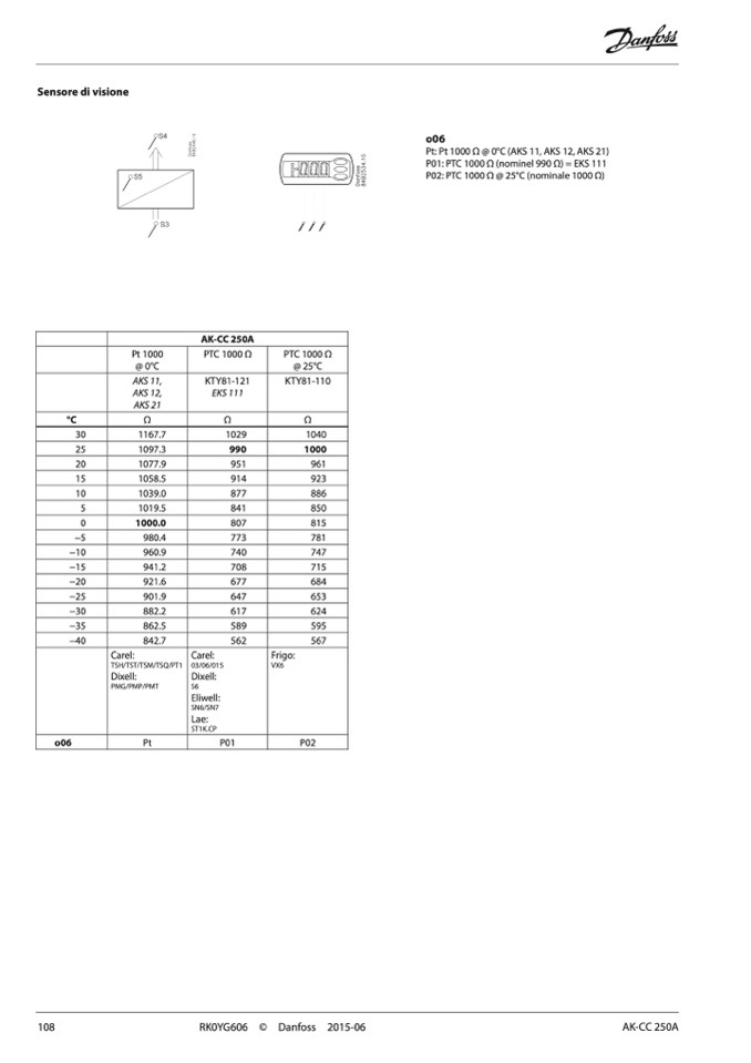Pt: Pt 1000 Ω @ 0°C (AKS 11, AKS 12, AKS 21)