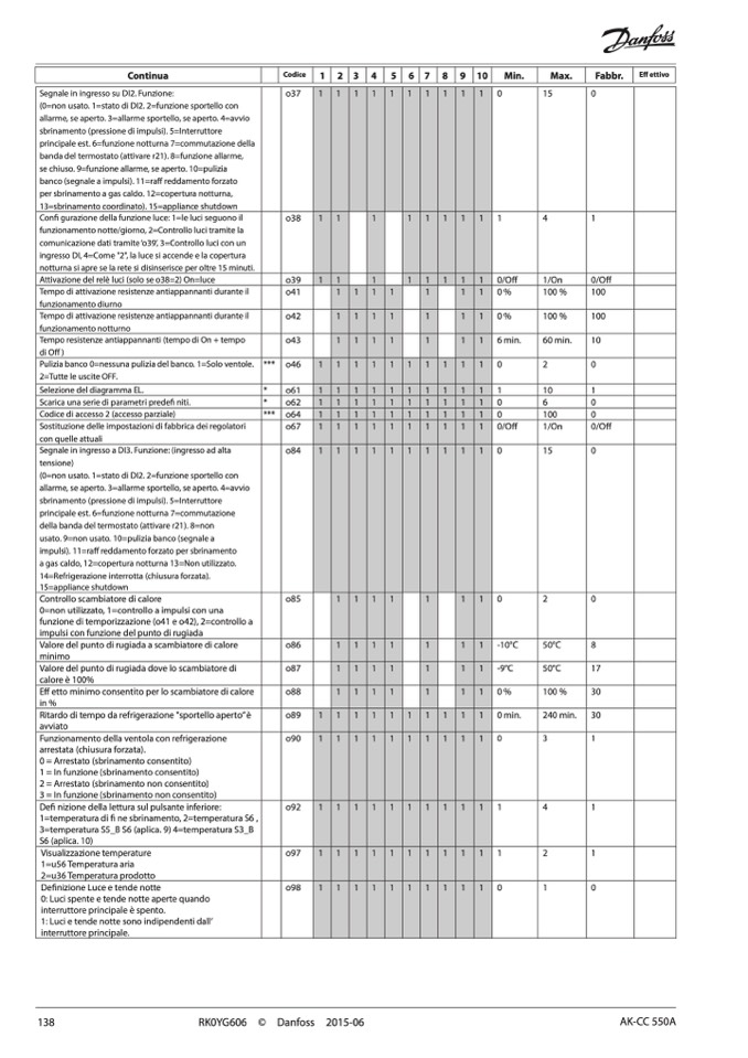 impulsi). 11=raff reddamento forzato per sbrinamento