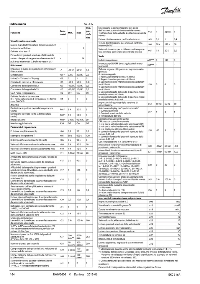 valvola di espansione, premere brevemente il