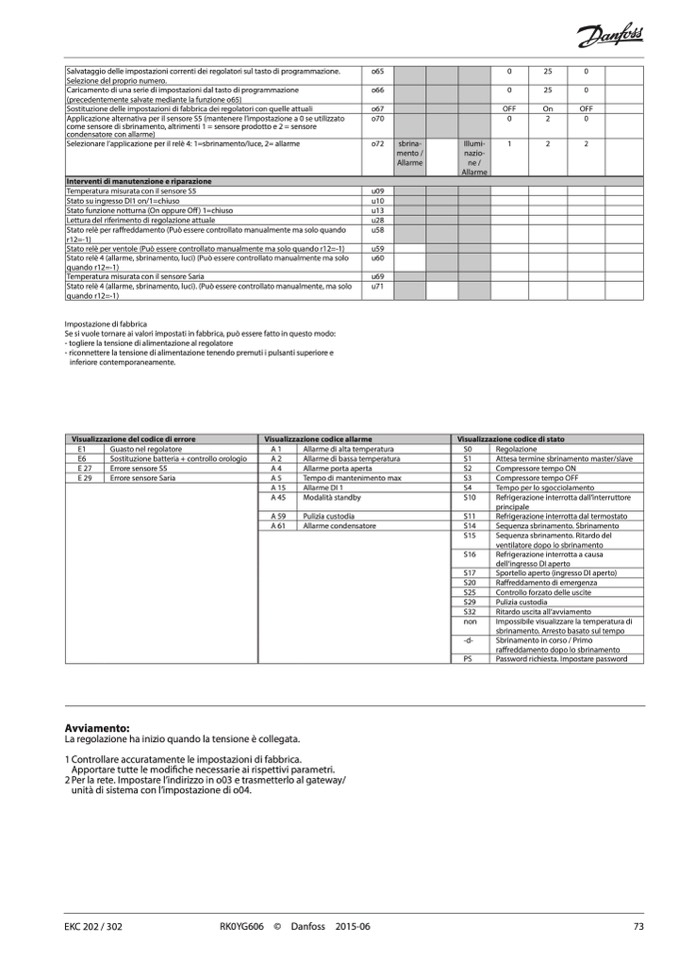 Stato relè 4 (allarme, sbrinamento, luci). (Può essere controllato manualmente, ma solo