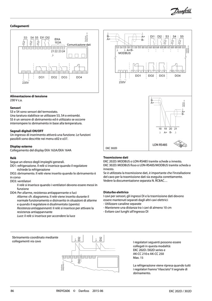 EKC 302D: MODBUS fisso o LON-RS485/MODBUS tramite scheda a