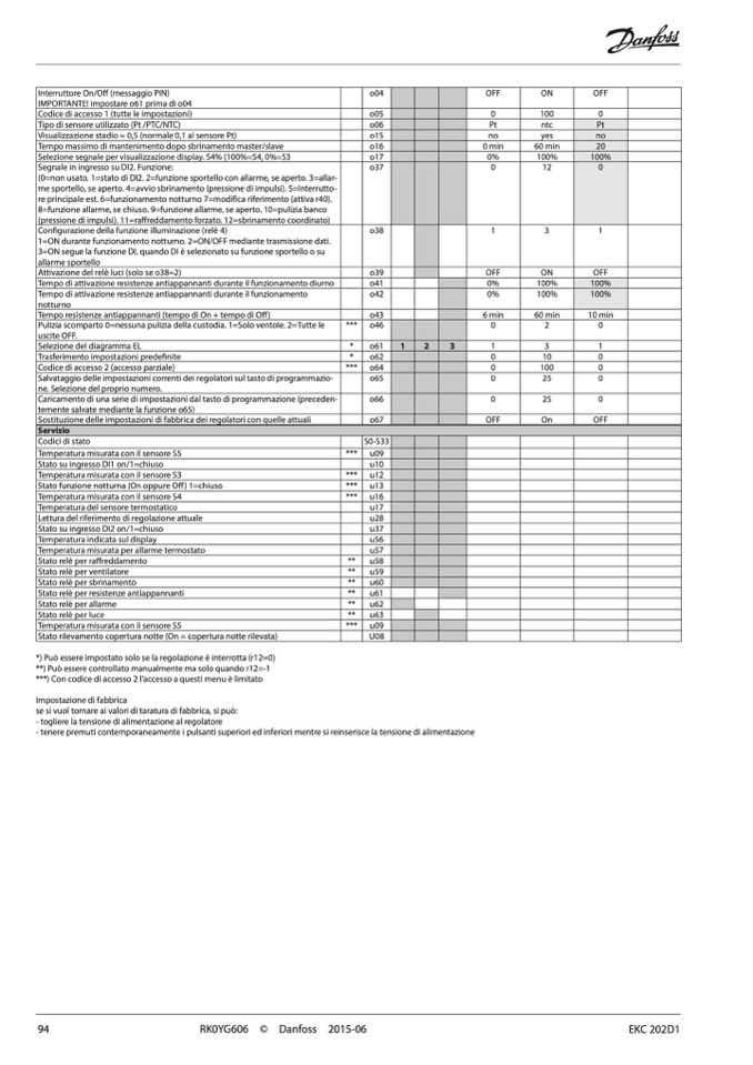**) Può essere controllato manualmente ma solo quando r12=-1