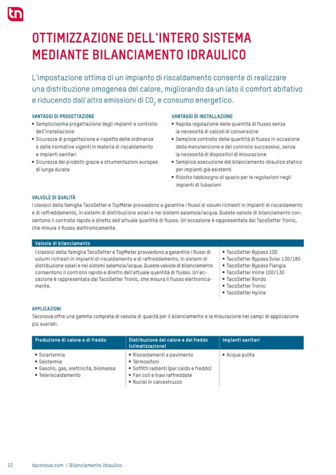 Taconova offre una gamma completa di valvola di qualità per il bilanciamento e la misurazione nei campi di applicazione