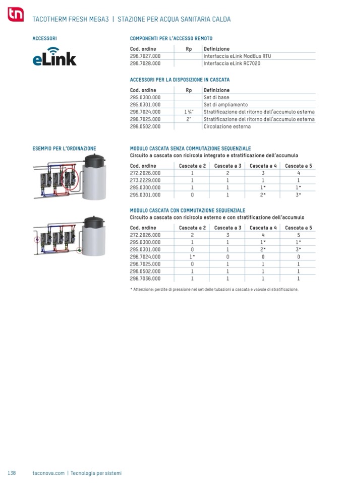 * Attenzione: perdite di pressione nel set delle tubazioni a cascata e valvole di stratificazione.