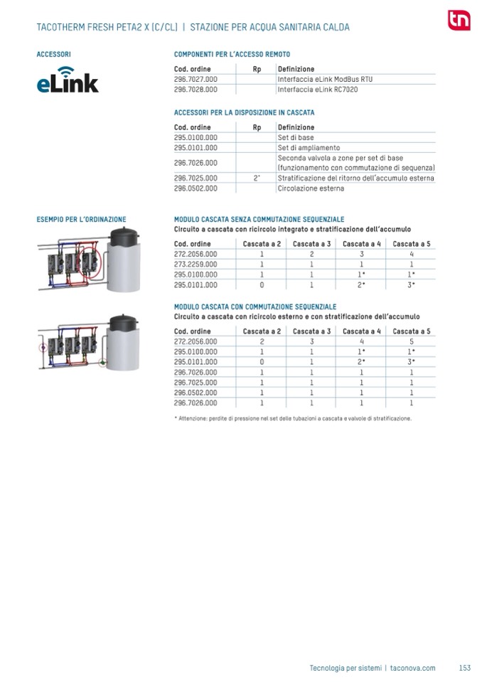 * Attenzione: perdite di pressione nel set delle tubazioni a cascata e valvole di stratificazione.