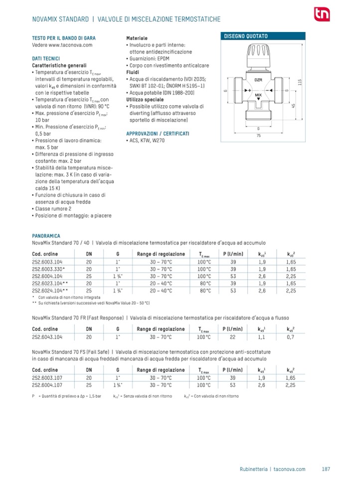 ** Su richiesta (versioni successive vedi NovaMix Value 20 - 50 °C)