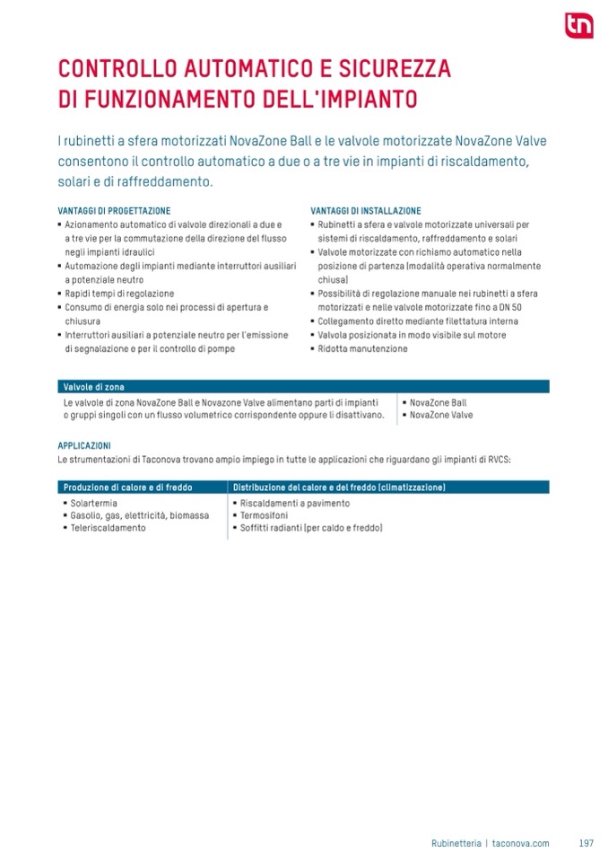 Le valvole di zona NovaZone Ball e Novazone Valve alimentano parti di impianti