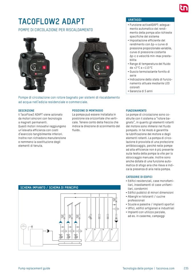 Pompe di circolazione con rotore bagnato per sistemi di riscaldamento