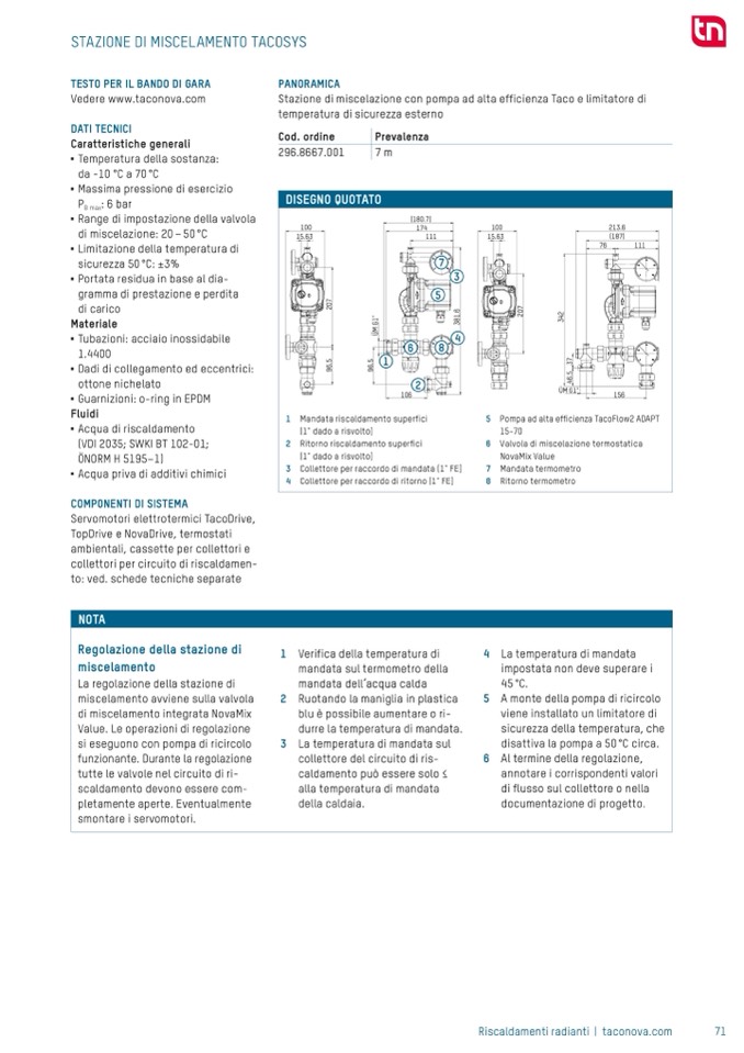 Stazione di miscelazione con pompa ad alta efficienza Taco e limitatore di