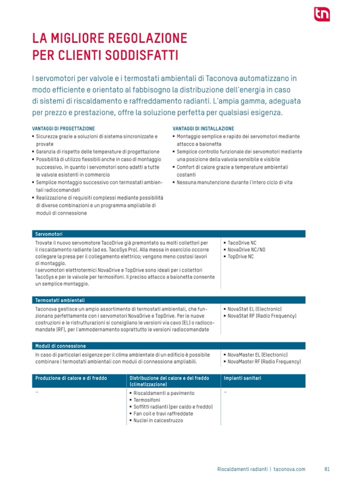 il riscaldamento radiante (ad es. TacoSys Pro). Alla messa in esercizio occorre