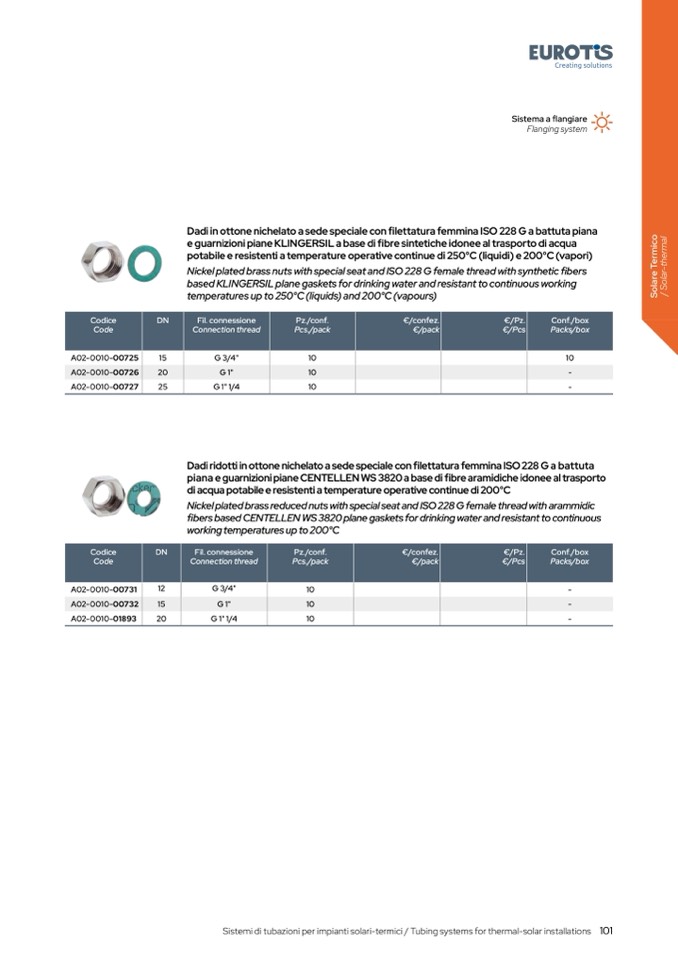 Sistemi di tubazioni per impianti solari-termici / Tubing systems for thermal-solar installations