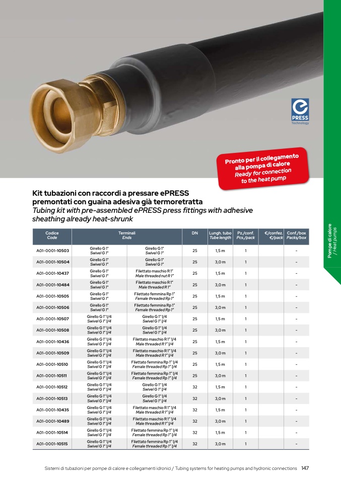 Sistemi di tubazioni per pompe di calore e collegamenti idronici / Tubing systems for heating pumps and hydronic connections