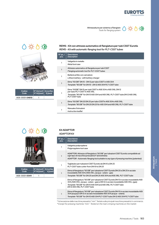 Template “60 DB” for DN 20 DN 25 for AISI 304 and AISI 316L PLT-CSST tube