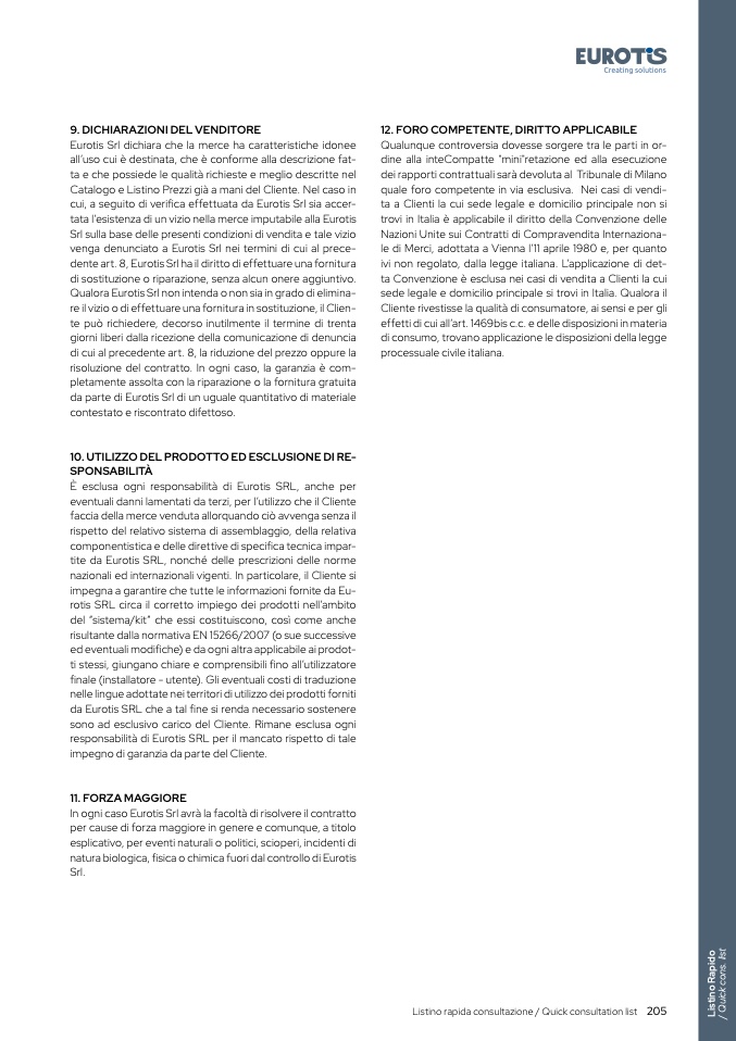 Listino rapida consultazione / Quick consultation list