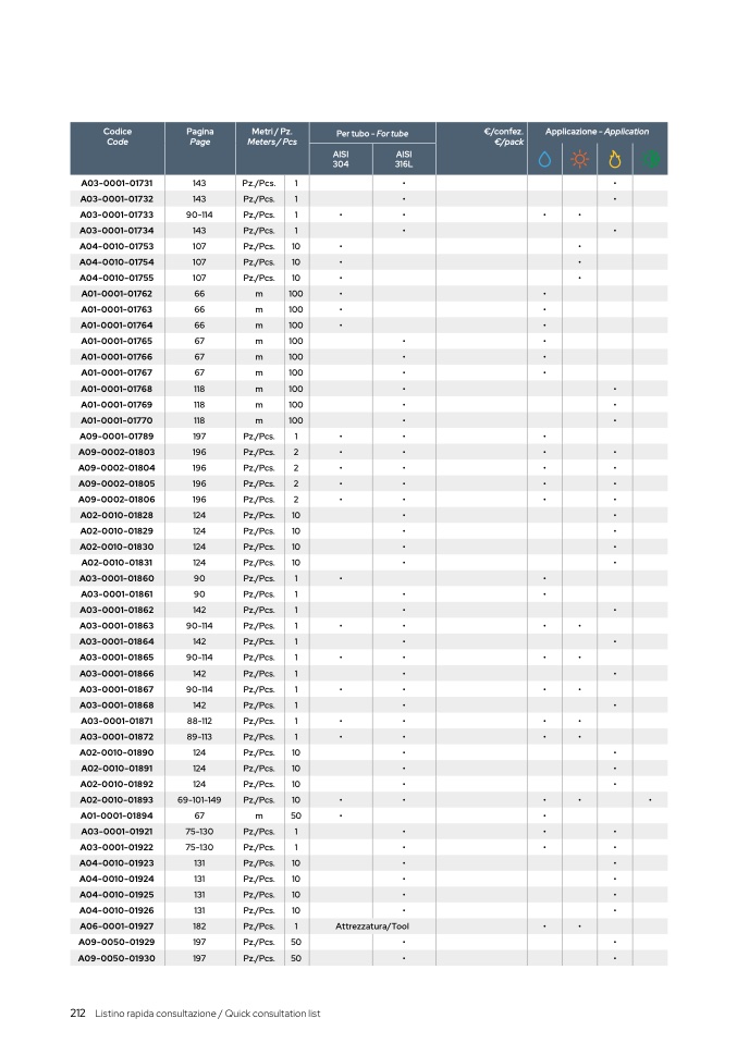 Listino rapida consultazione / Quick consultation list
