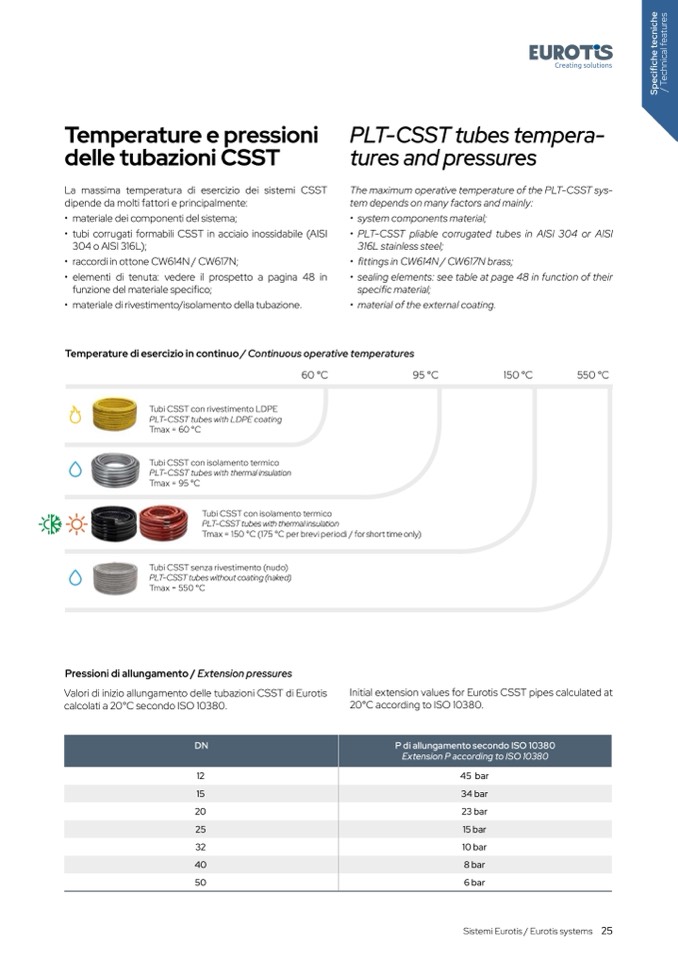 Valori di inizio allungamento delle tubazioni CSST di Eurotis