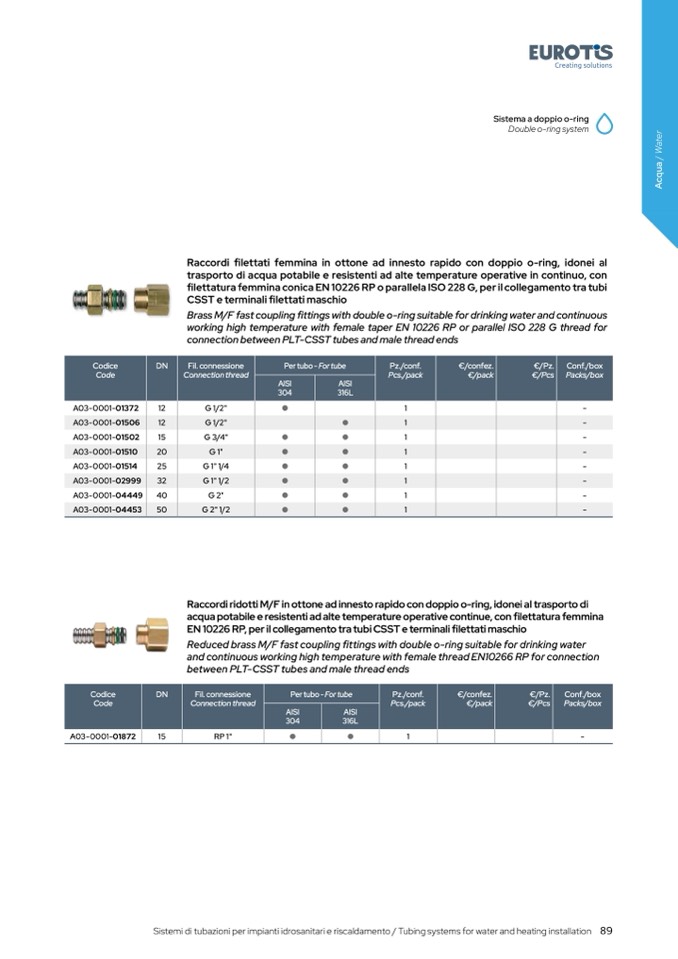 Sistemi di tubazioni per impianti idrosanitari e riscaldamento / Tubing systems for water and heating installation
