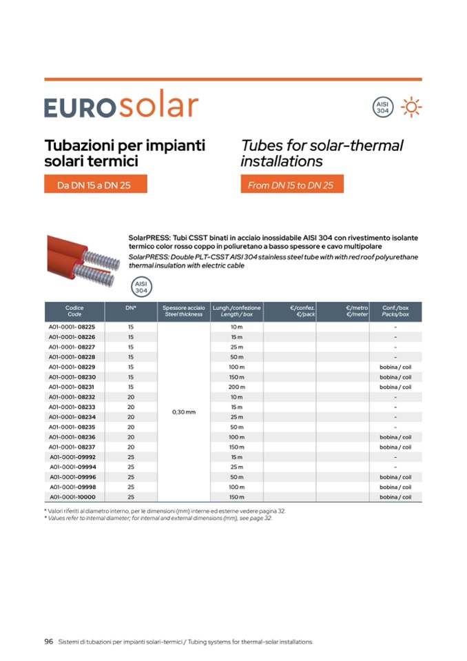 SolarPRESS: Double PLT-CSST AISI 304 stainless steel tube with with red roof polyurethane