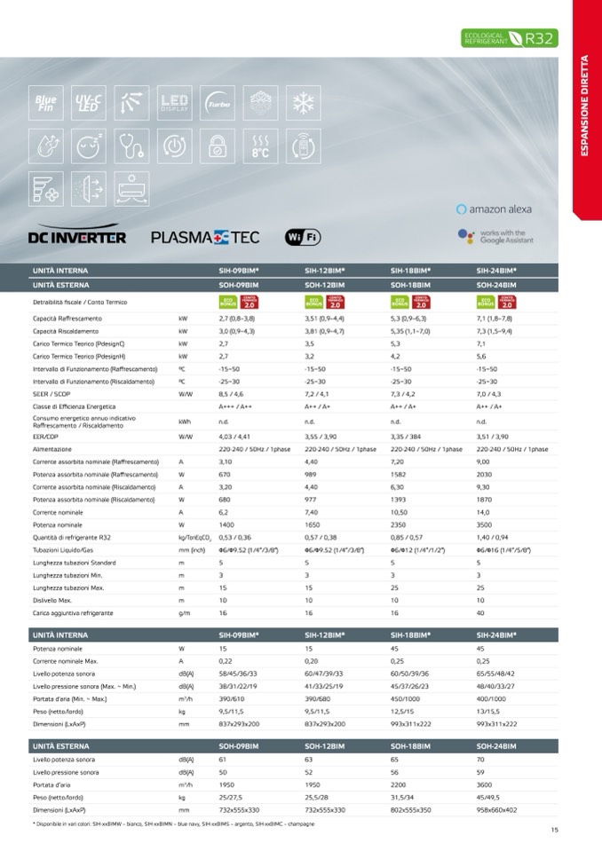 * Disponibile in vari colori: SIH-xxBIMW – bianco, SIH-xxBIMN – blue navy, SIH-xxBIMS – argento, SIH-xxBIMC – champagne