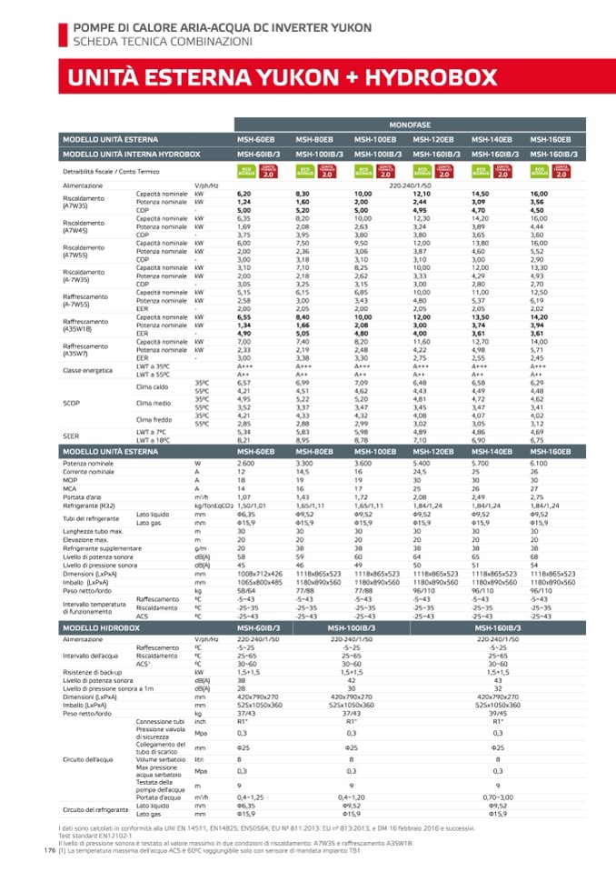 I dati sono calcolati in conformità alla UNI EN 14511, EN14825, EN50564, EU N° 811:2013. EU n° 813:2013, e DM 16 febbraio 2016 e successivi.